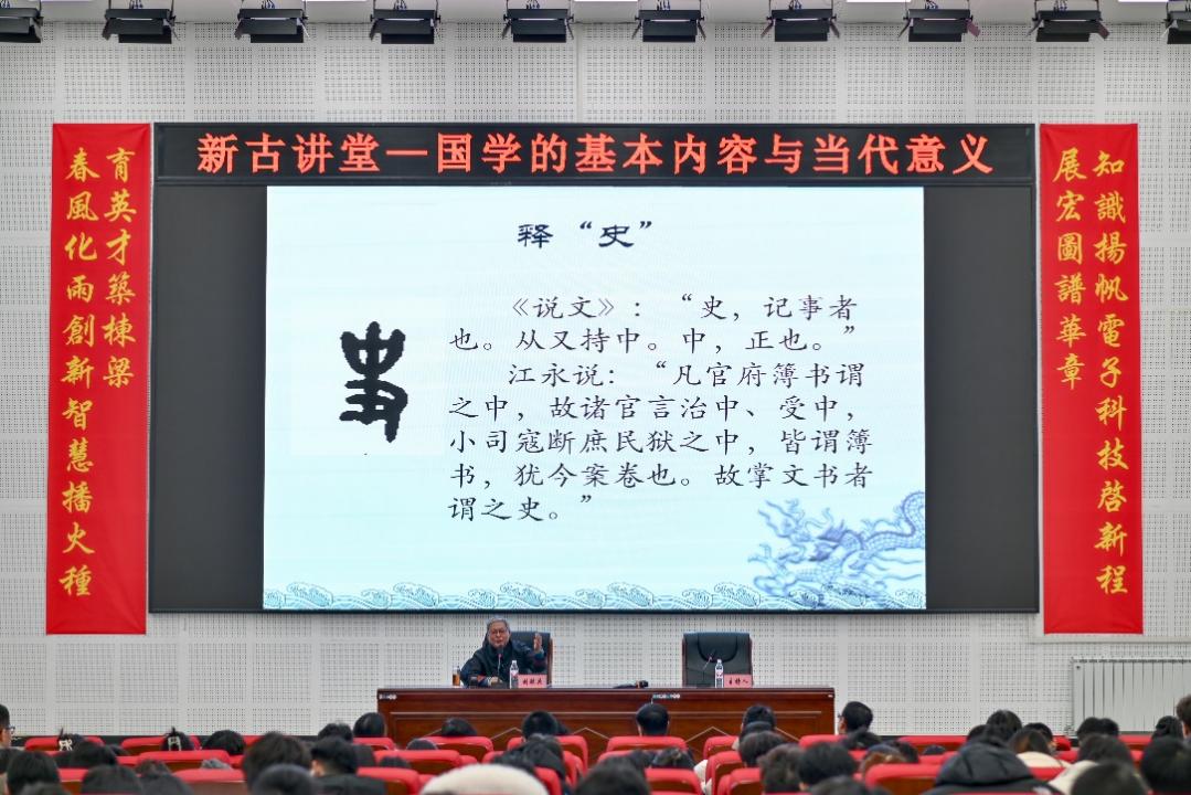 为传承珍贵文化遗产,让同学们深入领略国学的博大精深,提高国学知识储备,进一步加强同学们的道德修养,智能制造产业学院党支部于2024年12月4日,在化学报告厅举办了“新古讲堂”系列讲座第一讲——国学的基本内容与当代意义,活动特邀山西大学国学研究院院长刘毓庆教授主讲,临汾市儒学文化促进会的各位专家,以及党支部负责人赵春江和学工组负责人韩丽娟带领我院师生一同参加此次讲座。