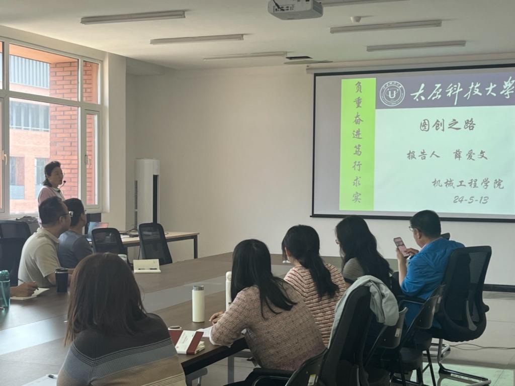 2024年5月13日,太原科技大学工程图学教研室副教授、中国图学会技术委员会委员,机械工程学院教学指导委员会委员,机械虚拟仿真所副所长薛爱文老师以《图创之路》为题,就先进成图技术与产品信息建模创新大赛的举办时间、竞赛内容,比赛要求,阅卷要求进行讲座,智能制造产业学院全体教师和成图大赛参赛学生参会聆听,学院负责人赵春江教授主持。