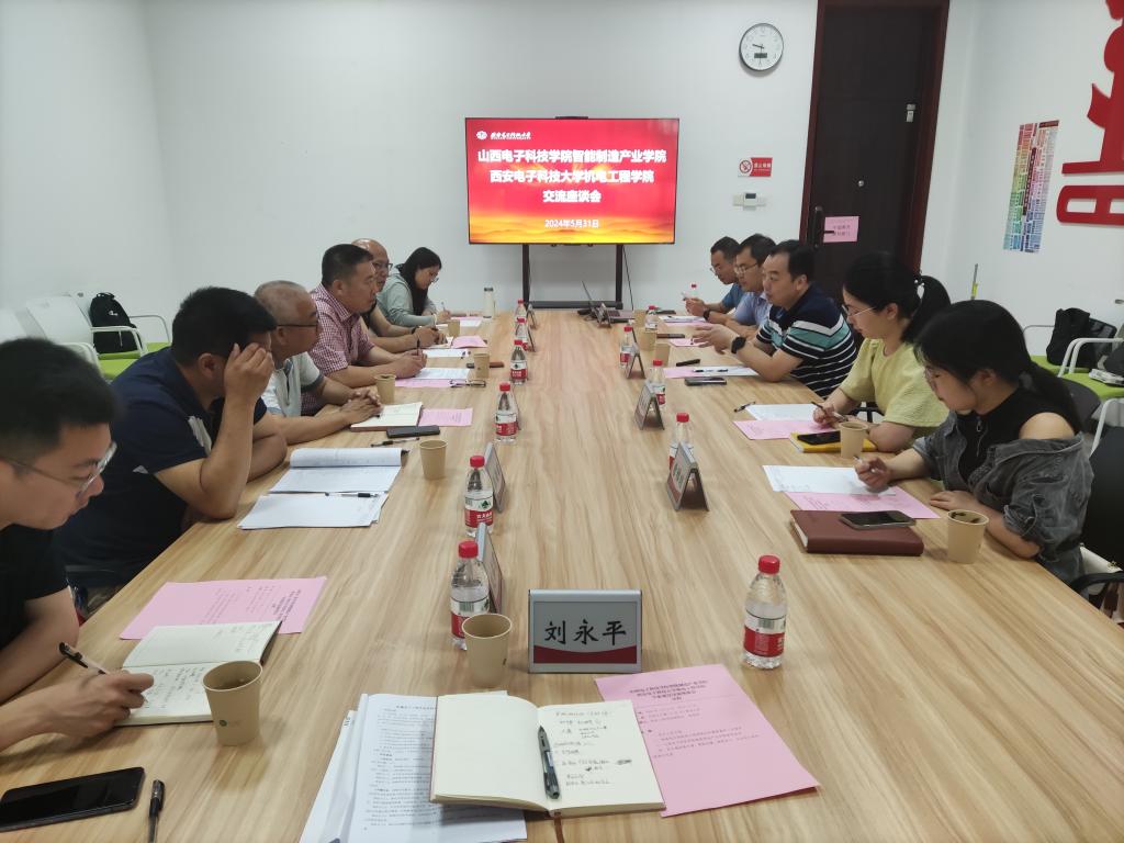 交流会议在西安电子科技大学机电工程学院北校区主楼Ⅲ区143南会议室进行,机电工程学院副院长陈晓龙主持会议,办公室主任王飞,机器人工程系、自动控制系、电子机械系的系主任及相关教师参加会议。