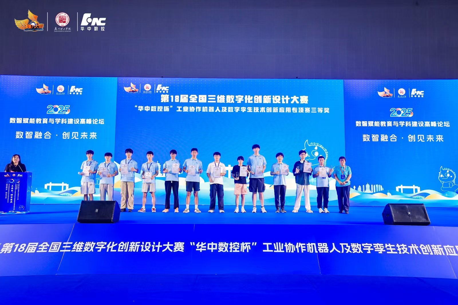 8月19日,2025数智赋能教育与学科建设高峰论坛暨"龙鼎奖"颁奖仪式在厦门理工学院举行,标志着2025第18届全国三维数字化创新设计大赛"华中数控杯"工业协作机器人及数字孪生技术创新应用专项赛全国总决赛圆满完成。tyc8722太阳集团参赛团队在本次竞赛中,凭借扎实的专业功底和良好的竞技状态,经过激烈角逐,荣获全国三等奖。