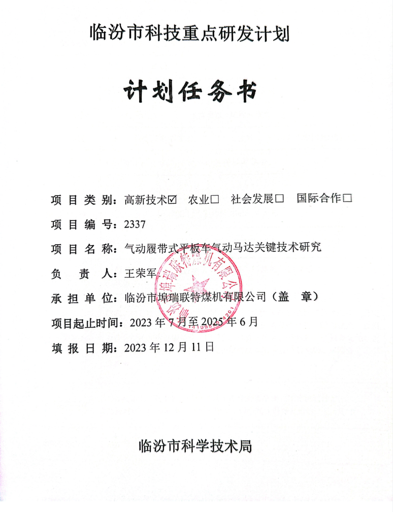 由我院闫献国教授、王荣军教授主持承担、与临汾市埠瑞联特煤机有限公司合报的临汾市科技重点研发计划项目获批。该项目针对气动履带式平板车气动马达轴承磨损快,润滑不够,轴承烧坏等现象,从影响气动马达关键零部件使用寿命的影响因素入手,完成基于非均匀气流场作用的气动马达关键零部件受力解析技术;高转速环境下多因素交互影响的气动马达关键零部件温度场分布、基于多场耦合作用的气动马达结构优化设计的相关内容。项目创新点体现在非均匀气流场作用的零部件间相互作用机制;多因素交互影响温度场模型;耦合非均匀气流场作用和多因素交互影响的温度场分布的设计方法,采取“理论分析-数值模拟-实验验证”三位一体的研究方法,开发转速高(4000-6000r/min)、结构紧凑、输出功率高(7kW)的矿用气动履带式平板车气动马达,完成气动履带式平板车气动马达关键技术研究。