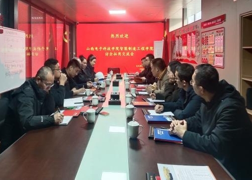 在随后召开的座谈会上,双方围绕人才培养、实习就业、产学研合作等议题展开深入探讨。赵春江教授介绍了学院的专业设置、人才培养模式及毕业生就业情况。他强调,学院始终以服务经济发展为导向,为企业“量身定制”高素质技术技能人才。此次走访旨在进一步优化人才培养方案,确保教学内容与岗位需求无缝对接。尧之源机械制造有限公司负责人表示,公司正处于快速发展的关键期,对智能制造领域人才的需求持续增长。希望双方共建“智能制造实训基地”,为学生提供真实项目实践平台,同时可以联合开展技术研发,攻克关键技术。